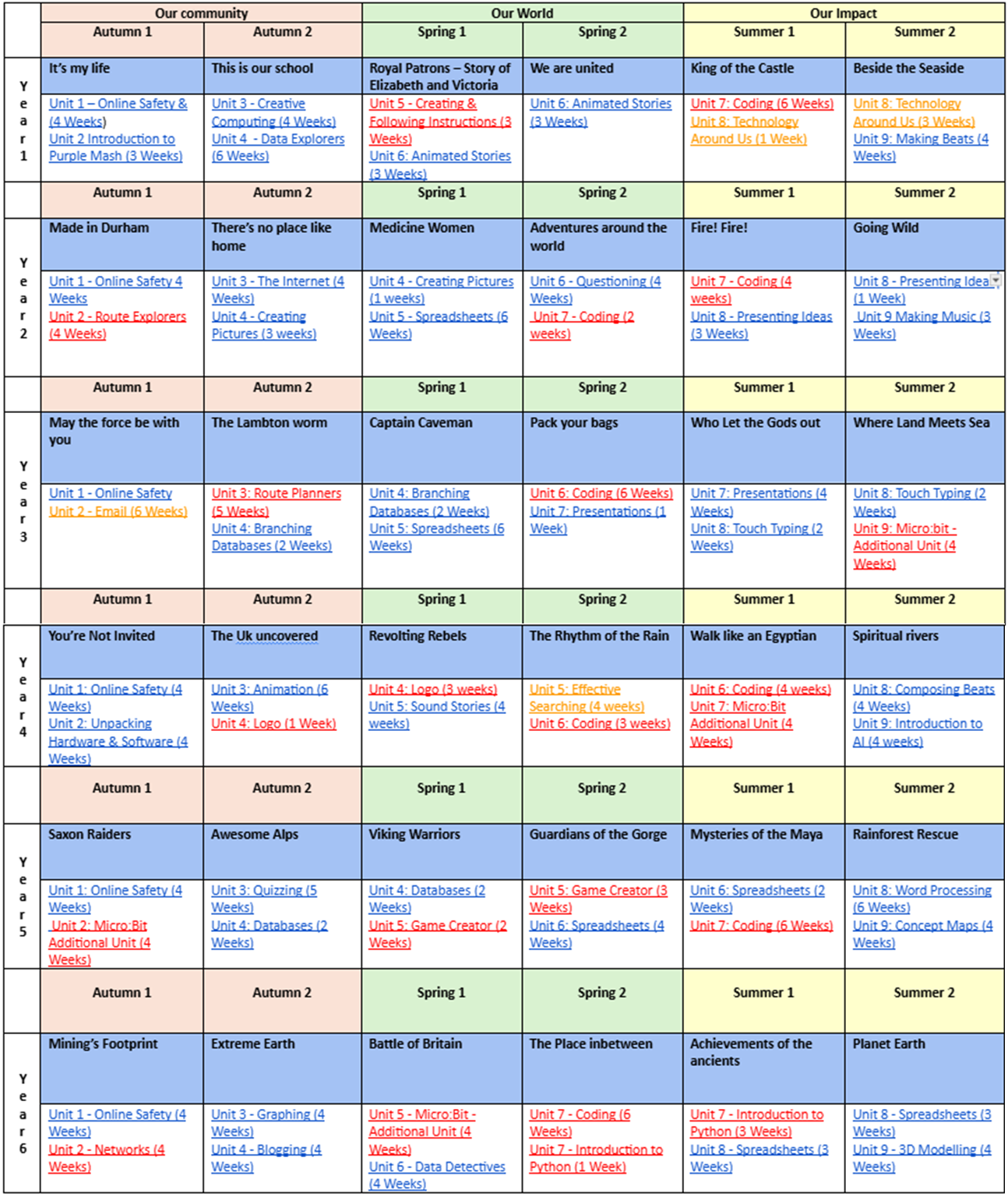 When learning about Information Technology, we want our children to recognise that digital content can be represented in many forms, be able to present and edit information themselves and use software to their advantage by storing information on a variety of networks.